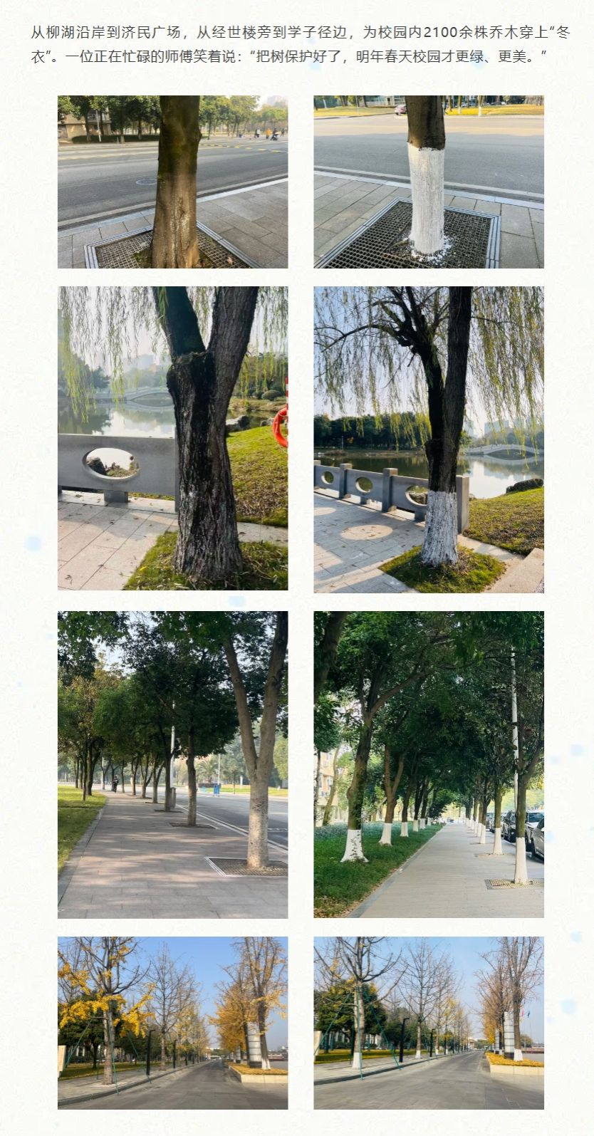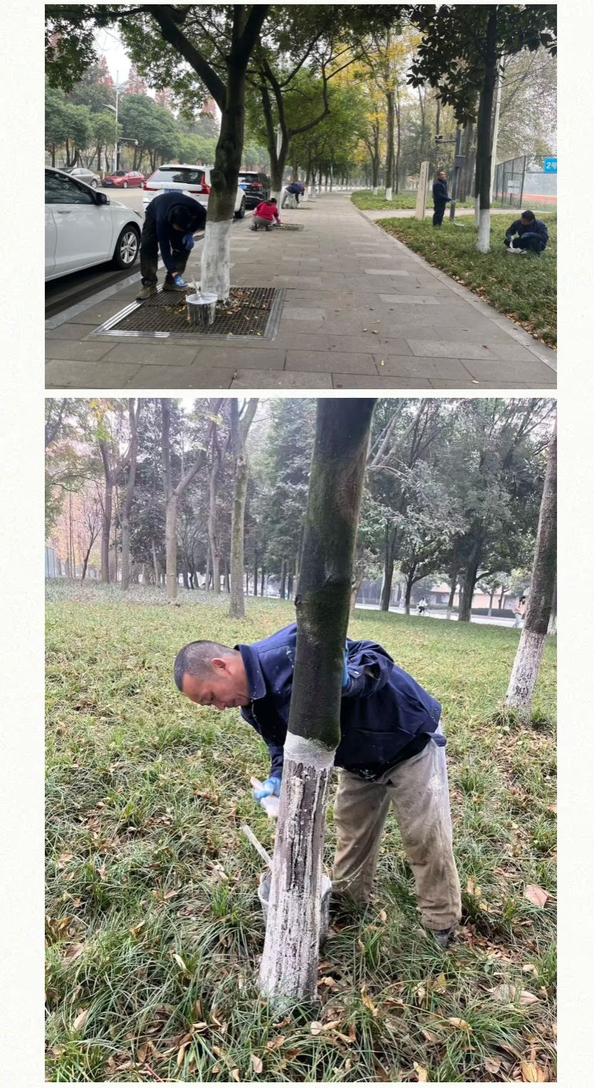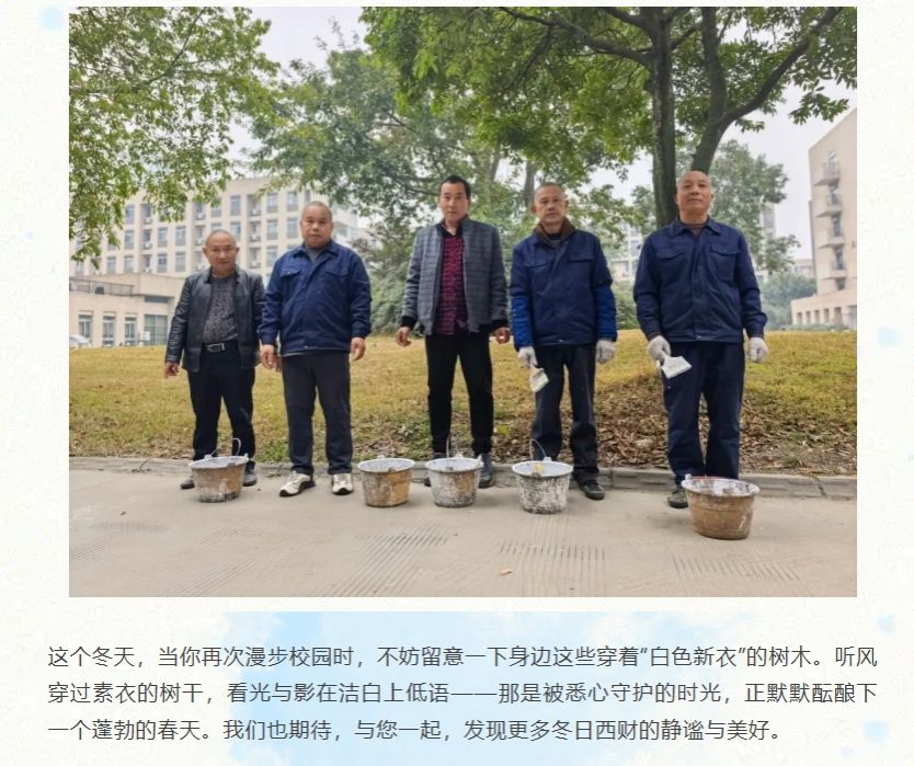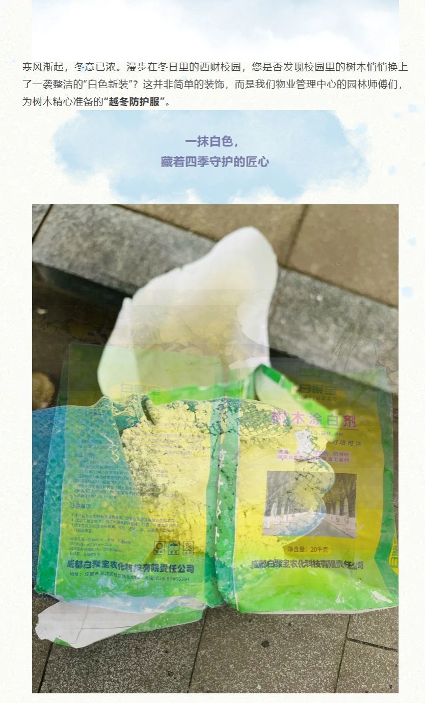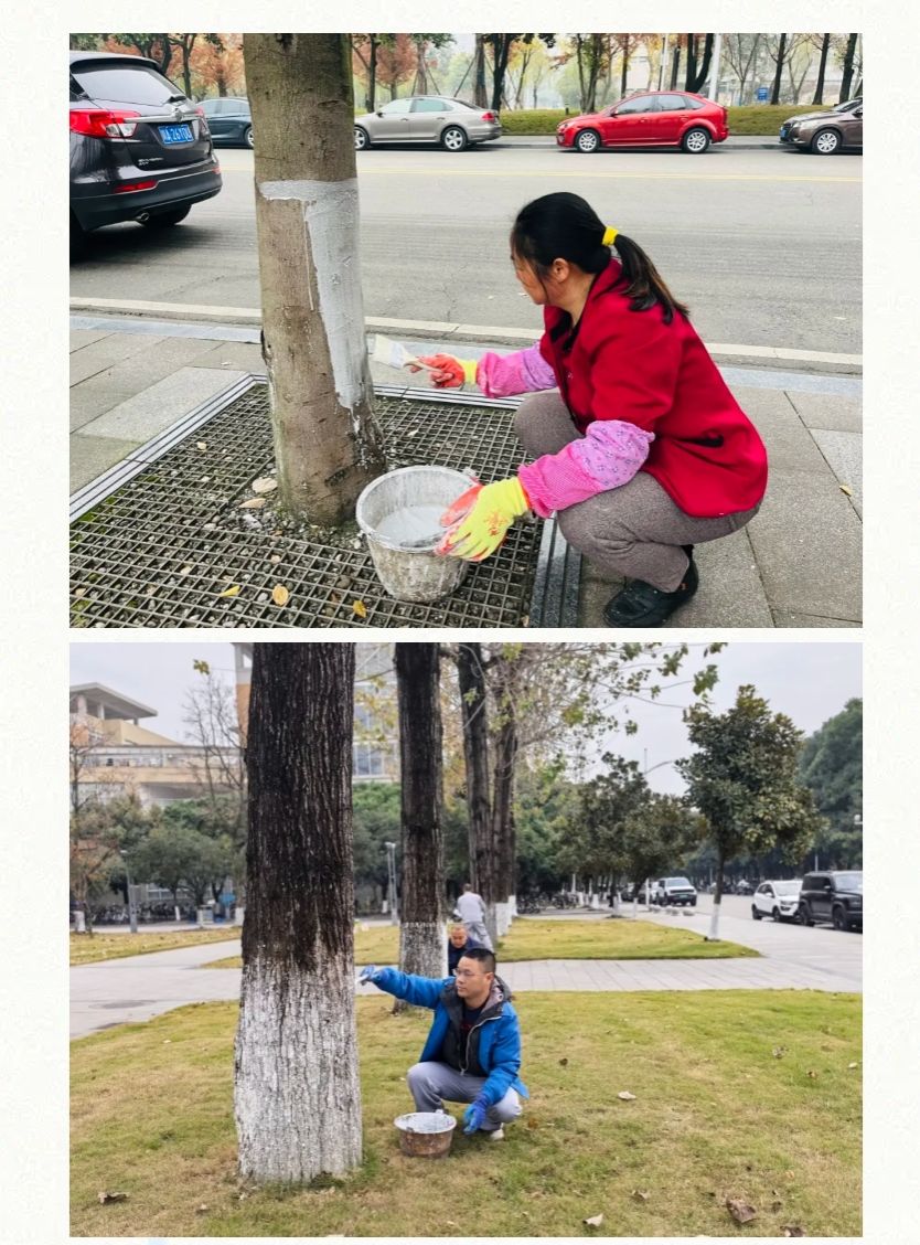 美丽西财丨给校园树木穿上“冬日新衣”,温暖守护每一片绿荫