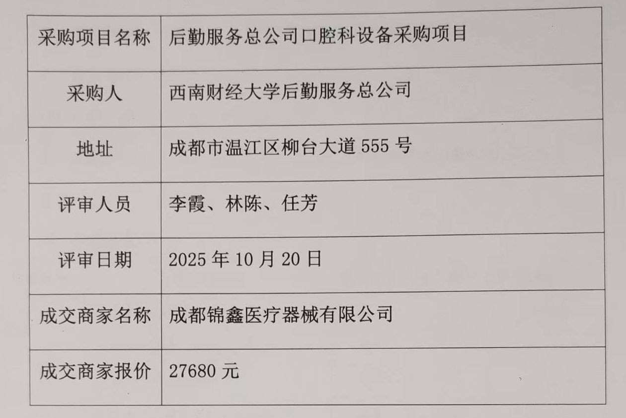后勤服务总公司口腔科设备采购项目第二次结果公示